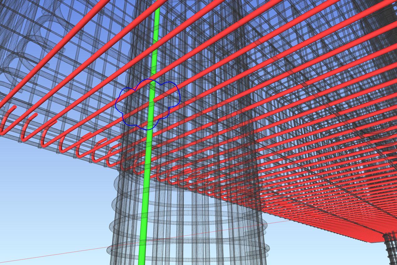 2次元では部材ごとに作成されていた配筋図を統合することで、鉄筋干渉のチェックが可能となります。