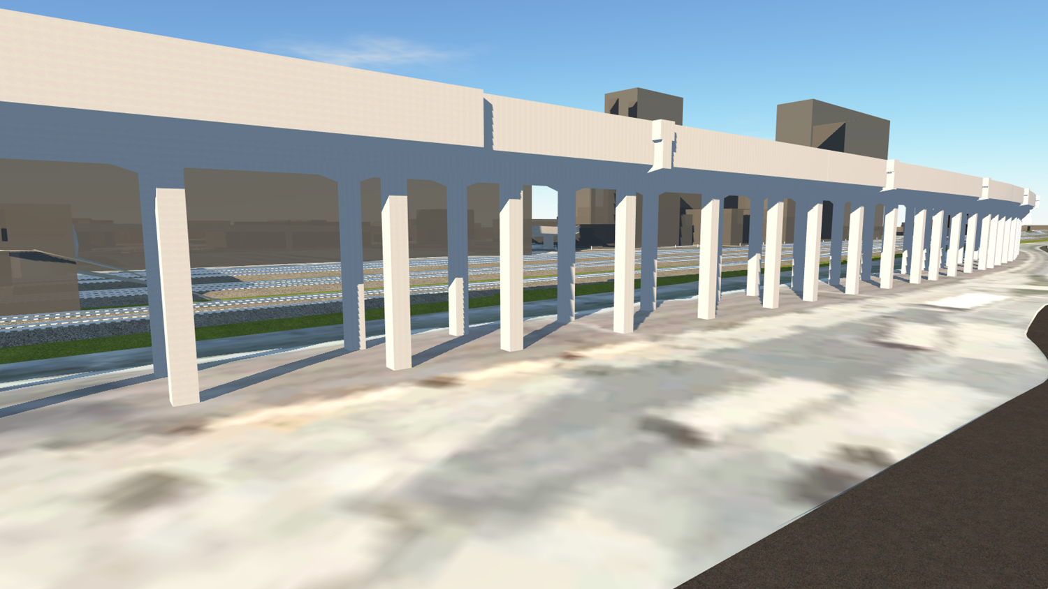 図面に基づき作成した橋りょう・道路・トンネル等の土木構造物の3Dモデルを、現況写真や現況地形3Dモデルに重ね合わせることで、完成前のプロジェクトをより具体的にイメージいただけるようにいたします。また、図面や写真等資料が揃わない場合にも対応可能です。