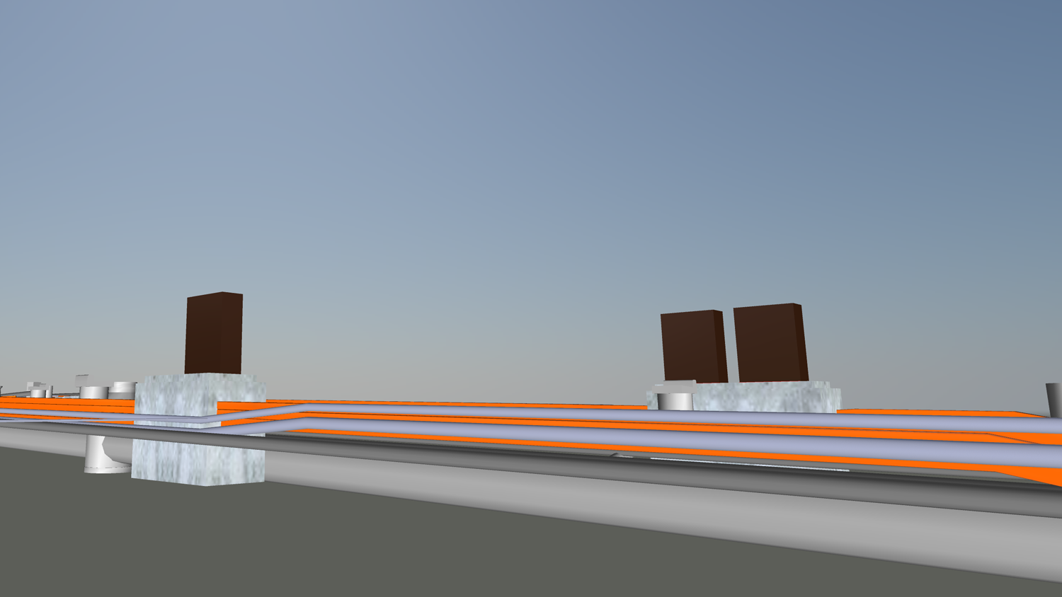 地下埋設物を3Dモデル化し地下空間を再現することは、電線共同溝の設計等で効果的です。設計段階で干渉する箇所を確認することにより、計画位置の修正や既設埋設物の移設計画を視覚的に行うことが可能となります。また、ソフトの自動離隔チェック機能を使って、既設埋設物や官民境界までの離隔の確認ができます。