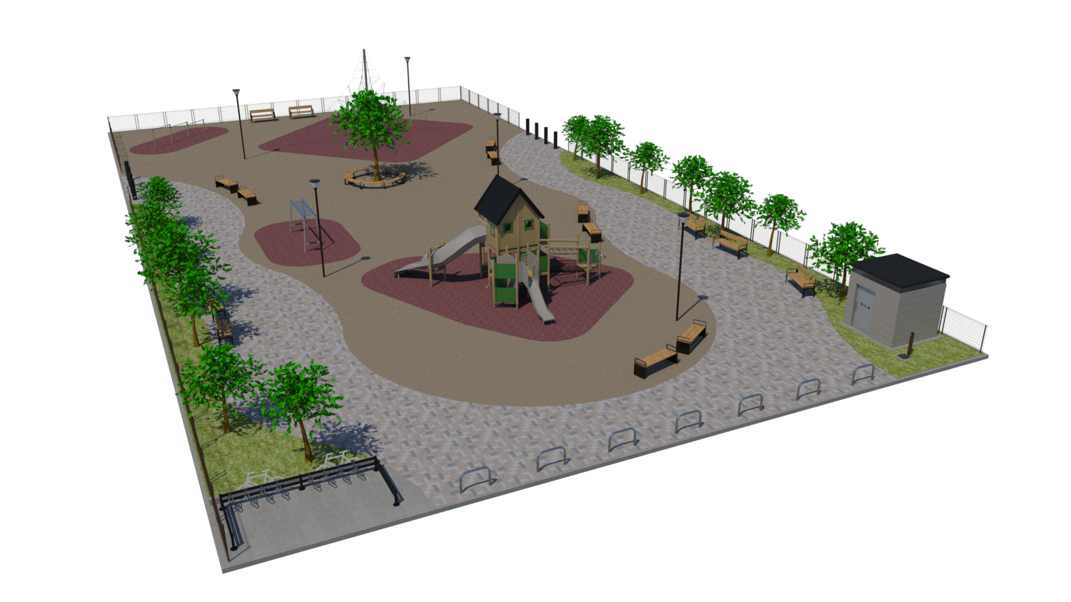 2次元の図面等をもとに、公園パース図を作成します。パース図に加え、フライスルー動画、ウォークスルー動画の作成も可能です。